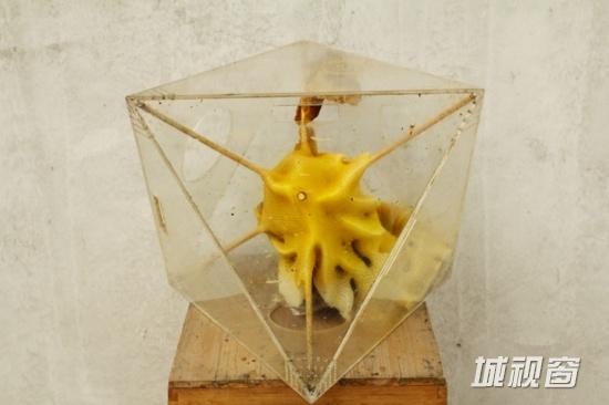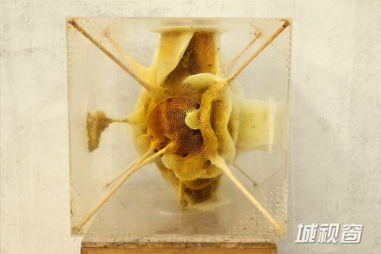 蜂窝本身的不稳定行成为了任驲创作的一个难题,但也正是这种特性让任驲找到了材料的可塑造性。自2008年起,任驲就开始了养蜂历程。两年之后他利用自己充分的养蜂知识完成了作品《元素I》——一幅幅由蜂窝构成的地图版画。之后的《元素II》可谓是从2D到3D的跨越,他将蜂王置于一个使用塑料多面体框架中心,让蜂窝呈放射状建造;每隔七天,任驲都会翻转多面体,以便让建造方向尽量呈现均衡的形状。诠释人类与自然关系的主题是任驲作品的标志,他接下来仍然希望能够利用自然的馈赠创作更多艺术作品。