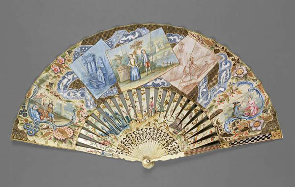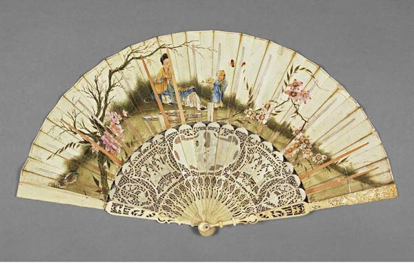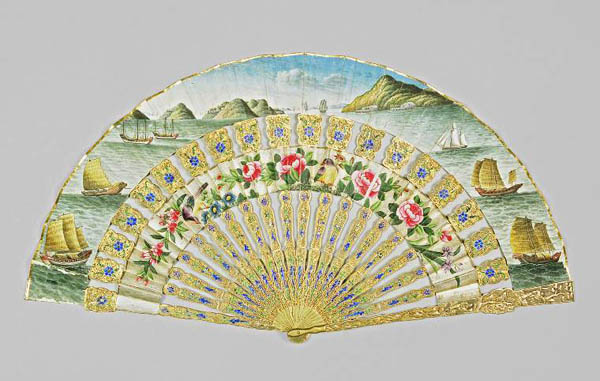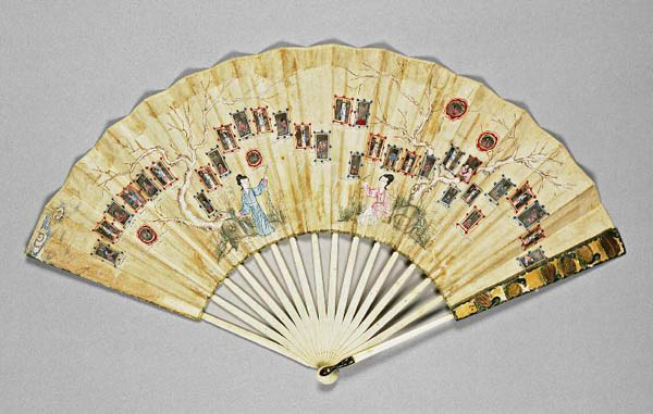 电影中的18、19世纪,常常见到身着华丽晚礼服的宫廷贵妇都竞相以手执一柄小巧精致、极具东方情趣的扇子为时尚。没有人知道,这些各种材料制作的精致扇子清一色来自广州。这些专供外销的扇子与中国传统扇有着明显区别,它们色彩艳丽,纹饰华美,材质多样。