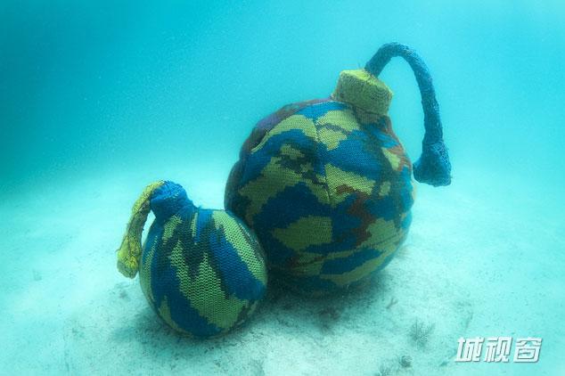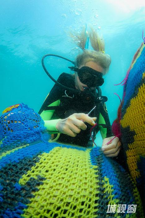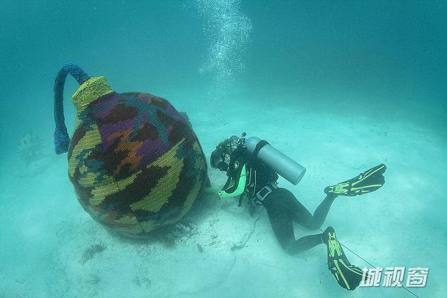 波兰艺术家为水下雕塑“穿”针织衫