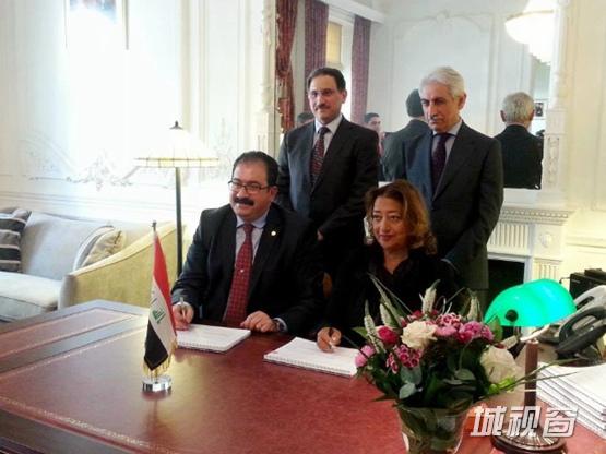 扎哈-哈迪德与伊拉克驻英国大使Faik Nerweyi签署伊拉克国会项目协议