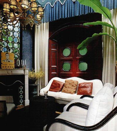 雍福会重新打造了一个过去,把握的是那个年代特有的“当东方遇到西方”。大户人家客堂间里的牌匾、对联安在了新派人家里的欧式壁炉上,明代千金小姐的床和“上世纪60年代”的Fendi沙发相安无事,印有毛泽东头像的陶瓷杯那么固执地和大红底色的英式茶杯放在一起。