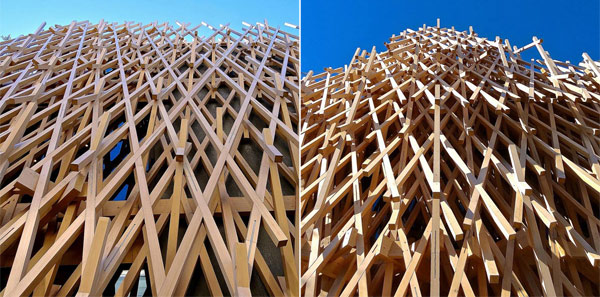 隈研吾说:“我想在热闹的城市中心创造一朵木质的云彩”。