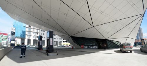 这座集加油站,麦当劳餐厅为一体的建筑位于格鲁吉亚(Georgia)的海滨城市巴统(Batumi),设计来自:Giorgi Khmaladze。