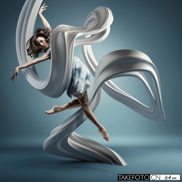 艺术家Mike Campau用镜头冻结了一系列舞者在跳舞时优美的动作,同时创造了一个动感流体的雕塑与舞者静止的动作完美地融合在一起。雕塑的颜色、所表现的流动性不仅与舞者的动作相契合,更是体现出了舞者的个人气质与舞蹈风格。
