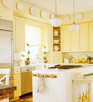 家装厨房设计效果图:鹅黄色是一种清新、鲜嫩的颜色,代表新生命的喜悦