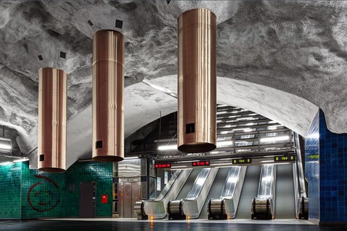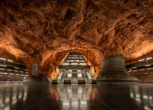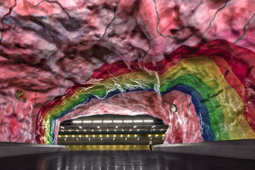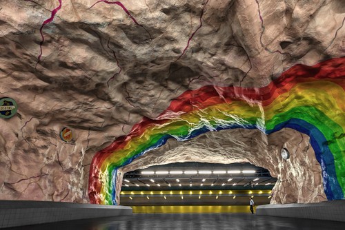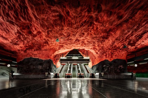 斯德哥尔摩地铁,最早开始于1950年,以其车站的装饰闻名。这个全长为108公里的地铁网号称世界上最长的艺术长廊。瑞典首都斯德哥尔摩拥有100个地铁站,其中47个位于地下,而它们正是令人倍感兴趣的地方。