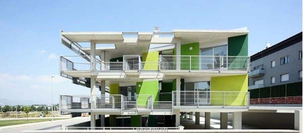 该项目巧妙利用了西立面朝向差但景观视野绝佳这两个矛盾的条件。为了保证所有的公寓都能直接欣赏到西面的景观,建筑师提出了BRISSE-SOLEIL HANDRAIL方法——设置一种构件,不但能阻挡西晒,同时又定义了一个能让人们欣赏农村风景的空间。