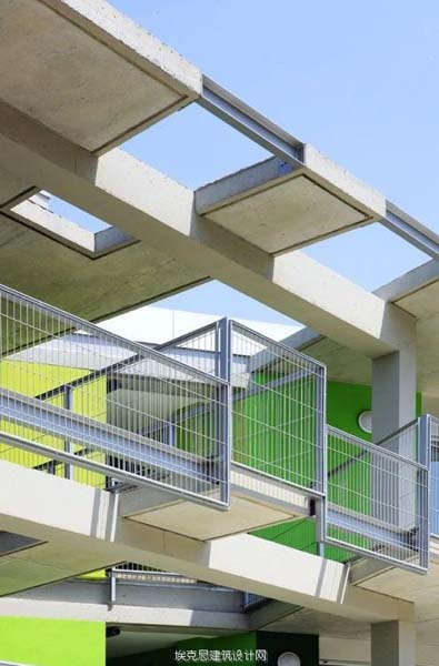 BRISSE-SOLEIL HANDRAIL由两米宽的构件构成,设在阳台上距离公寓室内地面往下一步的地方。该构件有助于定义一个门廊、保护所有的立面窗户免受垂直的夏日阳光的直接照射,同时还允许冬季的阳光进入每一套公寓室内。门廊为每套公寓提供了一个室外空间,人们可以在这里开展不同的活动。