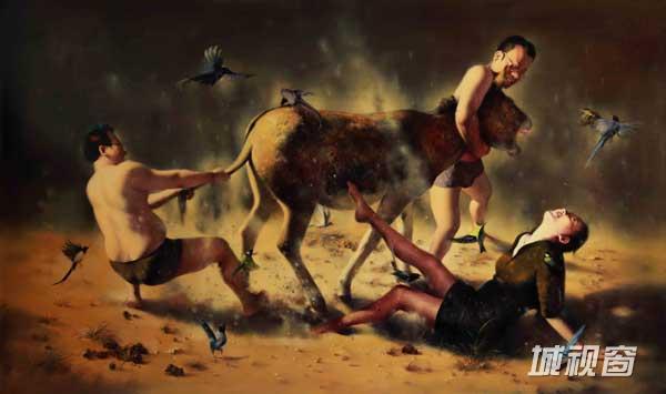 “我是谁?”主题思想源于中西方哲学思想的碰撞,是在中国当代物质极大丰富之后对生命根据的追问。作为一名70后油画家,戴增钧在油画中体现出了中国文人画的写意与率性,也有着对欧洲古典油画语言的学习、观察和成全,作品用笔洒脱,用色灵动,通过对光影、明暗、形体的塑造和把握,以艺术家的构思重新构建了一个虚幻迷离的光影空间。同时,戴增钧油画作品充满了调侃意味,画中精心构思的戏剧情节由悖反逻辑引导观众打开一扇审视自我的大门,却并不对自己提出的质疑进行追问,让观众在画面由生活细节混搭而衍生出对精神荒原的思考持续在迷惑之中,在调侃自己的同时调侃观众,在调侃观众的同时调侃生活,调侃已经成为戴增钧油画作品重要的艺术特征。