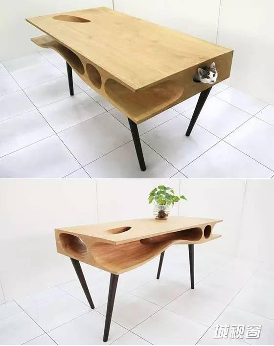 这个桌子的独特功能很明显,零壹城市建筑事务所设计的这款桌子,是爱猫人士的首选。终于找到了和猫咪和谐共处的方法了,再也不担心打翻的水杯和被毛茸茸盖住的电脑啦。