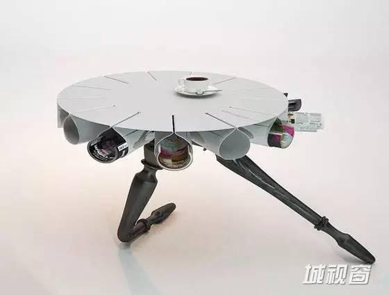 这个可爱的桌子是用钢化玻璃、金属树脂等复合材料构造的。尽管它实际上非常结实耐用,却给人一种失重的感觉。设计师克里斯托弗·达菲贡献了这俏皮的设计。
