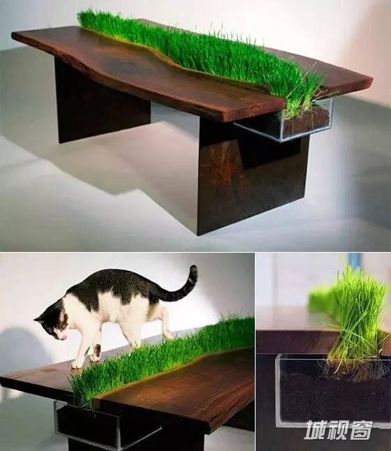 设计师Emily Wettstein的这款桌子,不用说是为资深猫奴准备的。中间可以种猫草。不养猫的朋友们,种点花花草草也好呀。