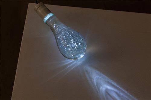 采用回收玻璃材质制作,球形的灯泡其实是实心的,里面充斥着各种气泡,而LED光源则隐藏其中,于是,当它被点亮,那种蓝色的光影,就像是透过大海仰望星空,如梦似幻。