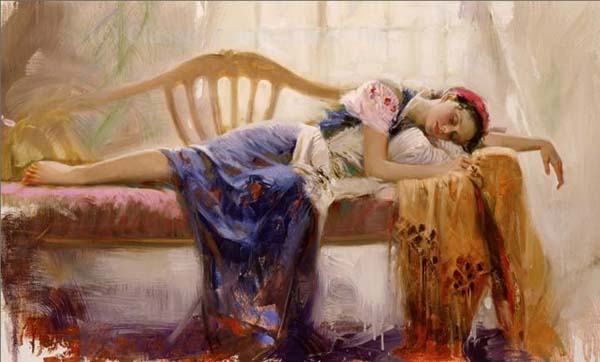 皮诺.德埃尼(Pino Daeni),意大利当代画家。1939年出生在意大利,毕业于巴里艺术学院,后又就读于米兰的布雷拉美术学院,在拉菲尔前派和马奇由里的影响下潜心研究人体的结构,进一步完善自己的画技。