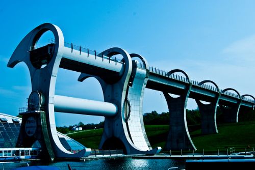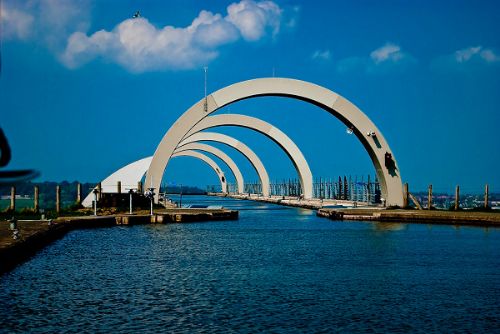苏格兰王国内其实有不少的运河,水道曾经在过去连接了各个城镇之间的商旅往来,乘船时山光水色一览无遗.其中的Forthof Clyde运河修建于1773年,贯穿整个苏格兰内陆的东西两岸,是世界上第一条人工修建的海通海运河.十九世纪时,在该运河的Falkirk地区段东南修建了Union Canal,通往Edinburgh(爱丁堡)。