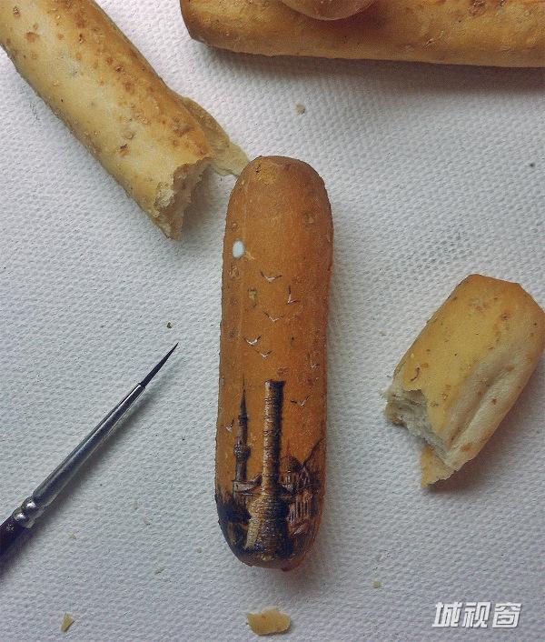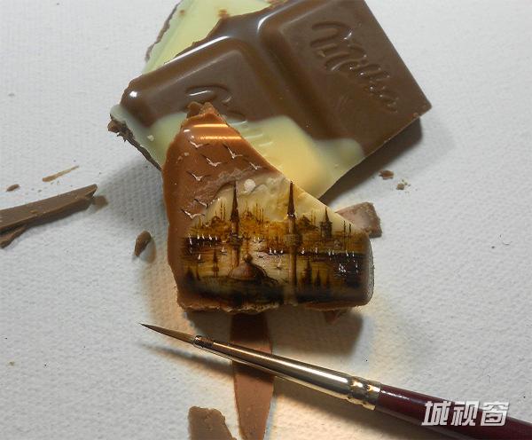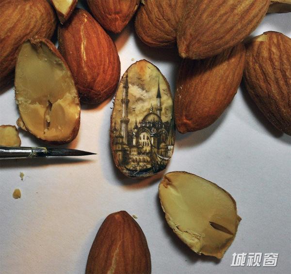 洋葱皮到猕猴桃种子甚至一小块巧克力,土耳其艺术家Hasan Kale可以把任何食物转换成他的迷你画布。Hasan很享受用纤细笔触绘制出家乡伊斯坦布尔的风光的过程,每一幅作品的精美细节都要用放大镜才能看到。