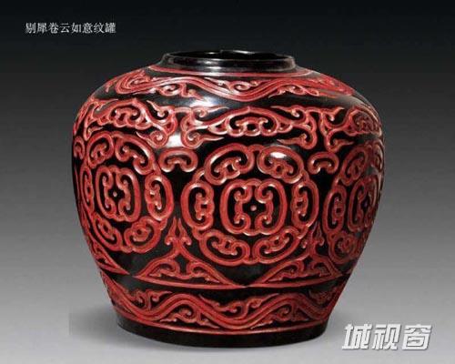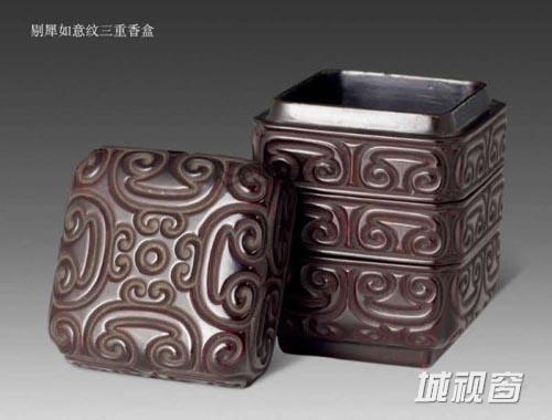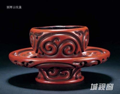 剔犀,亦称曰“云雕”,日本称之为“屈轮”。其做法与剔彩相近,即在器胎上用两种或三种色漆有规律地逐层髹涂,当各层达到一定的厚度时用刀斜剔出卷草、勾纹等不同的花纹,刀口断面清晰地显露出不同颜色的漆层,器表有黑面、红面或紫面的,其状如行云流水,自然流动。此技法出现不会晚于唐代,惟实物有待发现,其定型可能是在宋代,实例为江苏武进南宋墓出土的剔犀云纹执镜盒及剔犀竹柄团扇。元末明初此种技法达到很高水平,明清时流行,存世作品的数量较多。