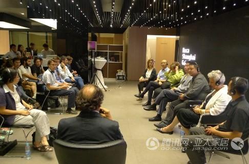 来自浙江大学建筑系和马德里圣保罗大学CEU建筑学院新锐设计师参加了此次论坛, 分别有两位学生代表发表了演讲,并且与当代中国建筑创作论坛总召集人王兴田、筑境建筑设计有限公司副总建筑师薄宏涛、西班牙驻沪总领馆经济商务处消费品部主管Esther Faig以及四位演讲嘉宾围绕中西建筑学术思想交流为主题依次发言探讨,现场气氛热烈。