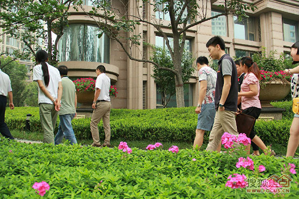 一行人享受小区静谧环境