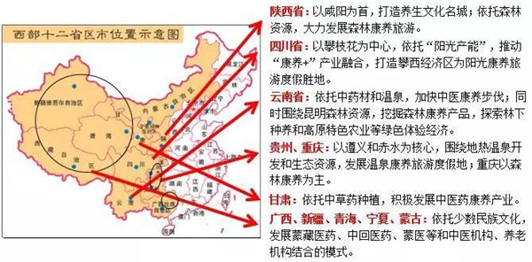 包括四川、贵州、云南、青海、广西、宁夏、甘肃、西藏、内蒙古、新疆、重庆、陕西等十二省、自治区和直辖市。拥有较为优质的康养旅游资源,以纯粹资源康养为主导。以下为西部各省康养产业状况: