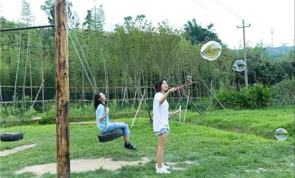 在田野里,不需要太多娱乐设施,一个风车、一个秋千,就会觉得满足,这样的田园野趣就如同小时候,只要在炎炎夏季能收到一根冰棒,就能开心一整天。