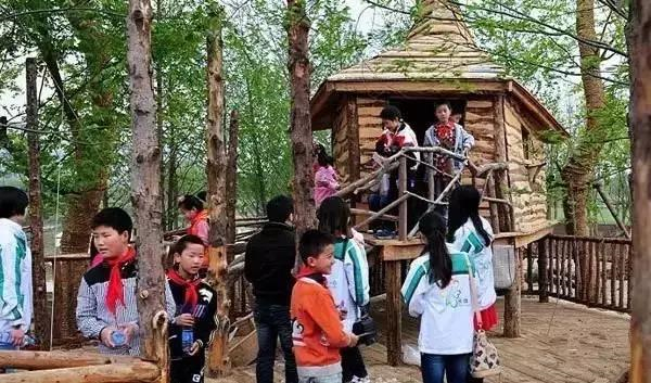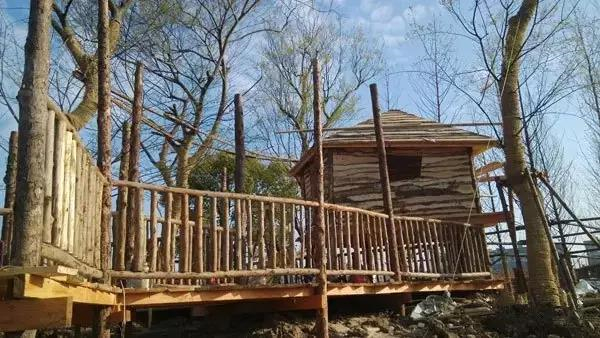 乐园是造梦的世界,树屋则是梦中的家。以“融合孩子与自然”为目标。在正式动工前,团队进行了庄重的"敬自然"仪式,不能因为建造树屋而锯掉任何枝叶,让自然材料和生长的树融为一体。乐园里的两个树屋,我们给它们分别取名为魔法和星云,如同它们的名字一样:魔法拥有魔力帽子一般的造型,给孩子以超能力的想象灵感空间;星云则是一个圆形木屋,被三棵大树包围,可在其圆形平台中仰望星空,找回童年里自然的回忆。