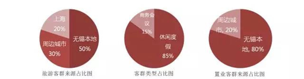 在工作日和旅游淡季,项目利用配套的会议中心引入一些商务会议客群作为补充,比重大概只占到10-20%;而重头戏还是在于休闲度假客群,占到80-90%。