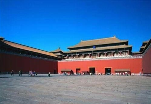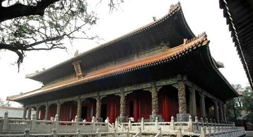 重檐庑殿顶庄重雄伟,是古建筑屋顶的最高等级,多用于皇宫或寺观的主殿,如故宫太和殿、泰安岱庙天贶殿、曲阜孔庙大成殿等。