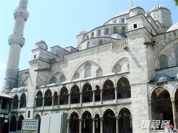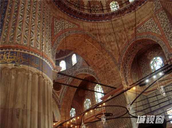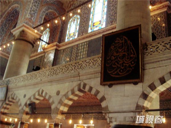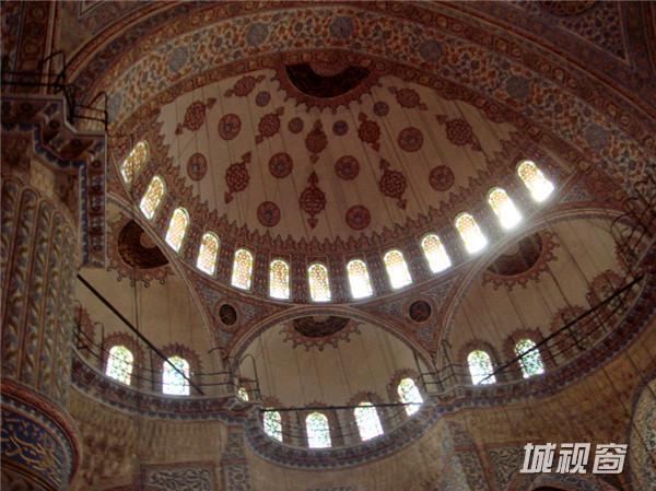整座蓝色清真寺装饰着的2万片上的伊兹尼蓝磁砖,也是蓝色清真寺的名字原因。