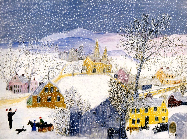 摩西在她80岁时即1940年在纽约举办个展,引起轰动。此后她的作品成为艺术市场中的热卖点,并且赢得了很多奖项。 1961年12月13日,画家摩西奶奶在纽约的胡西克瀑布逝世,终年101岁。她留下了11个孙辈、31个曾孙辈和无数的惊叹她的人们。