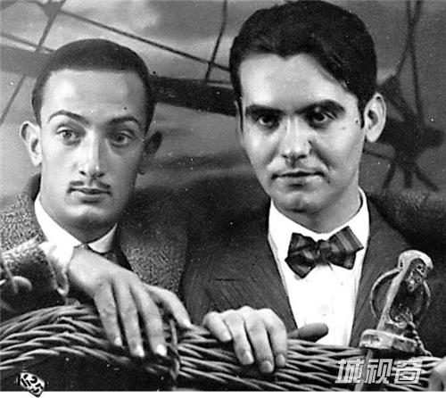 达利与西班牙诗人Federico Garcia Lorca(右),两人曾经是非常近亲的好朋友,诗人在给达利写的诗中表达了含蓄的爱慕之情。
