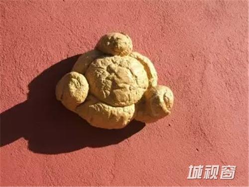 墙上的小黄点是当地的一种面包,它们和屋顶的大鸡蛋交相辉映,不用担心面包会变坏,因为它们都是塑料的。
