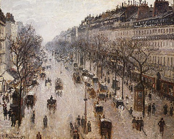 画于1897年,整幅画视角宽广、构图宏伟、透视准确。画中车马人流很小,粗笔带来,却仿佛在画中移动、生动形象。
