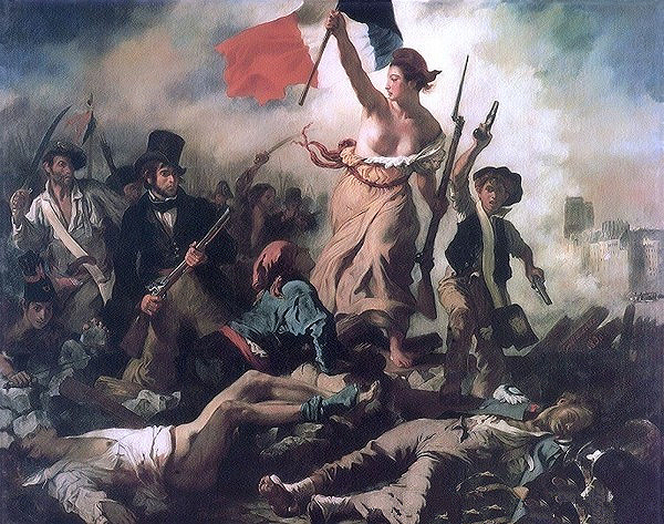 画家以奔放的热情歌颂了这次工人、小资产阶级和知识分子参加的革命运动。高举三色旗的象征自由神的妇女形象在这里突出地体现了浪漫主义特征。她健康、有力、坚决、美丽而朴素,正领导着工人、知识分子的革命队伍奋勇前进。强烈的光影所形成的戏剧性效果,与丰富而炽烈的色彩和充满着动力的构图形成了一种强烈、紧张、激昂的气氛,使得这幅画具有生动活跃的激动人心的力量。