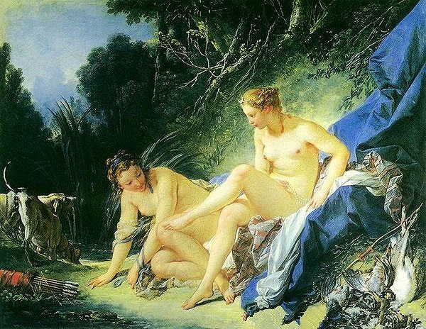 画家竭力描绘的是裸女的形体美,纤小的手足,柔嫩白皙的肌肤,躯体坚实丰腴,裸体姿色性感而诱人。由颈项下延至肩臂胸部的曲线,圆润如珠,光彩夺目。有位评论家认为这幅画是布歇“最艺术性的裸体画”。