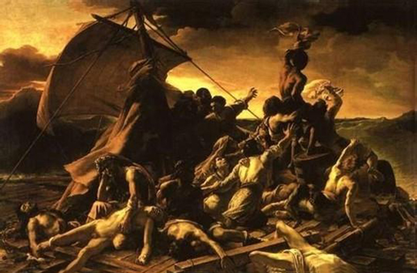背景介绍:1816年7月,法国政府派遣巡洋舰“梅杜萨号”,载着400多名官兵及少数贵族前往圣·路易斯港。率领舰队的是一名缺乏实际能力的舰长,由于他指挥错误,在途经西非海岸的布朗海岬南面时不慎搁浅,造成了惨重的灾祸。
