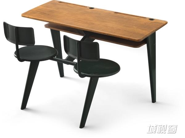 Jean最初是木匠出身,后来被训练为设计师和工程师。他对材料和制造过程的深度研究,令他带给我们一系列经典制作。这个桌椅组合也可见他的经典创作,最初是为战后的新学校们设计的。