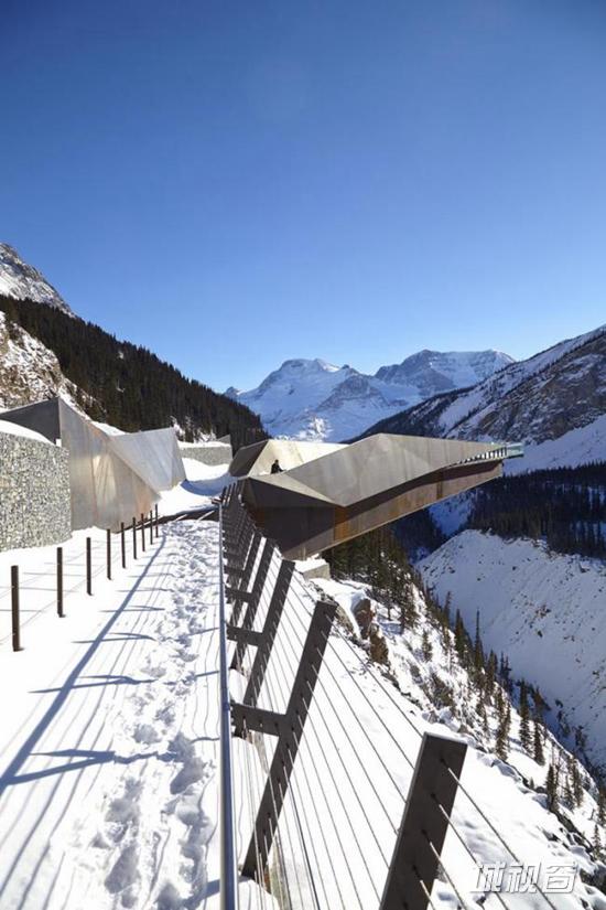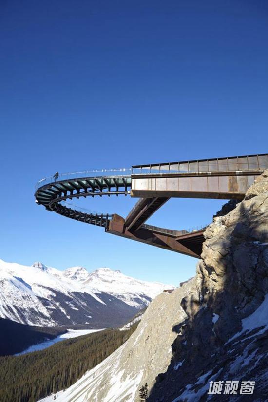冰川天空步道是一条450m(1 475英尺)长的步道,位于加拿大落基山脉贾斯珀国家公园群山环绕的景观中。耐候钢和玻璃结构向外悬挑出来,俯瞰辛华达峡谷,面向位于横跨大陆分水岭的冰原上。