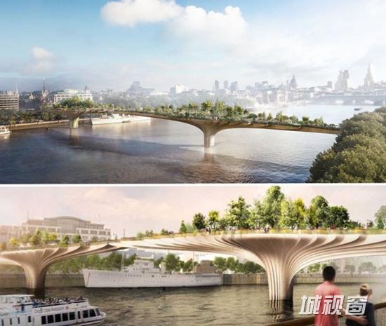 这座人行天桥建立在伦敦泰晤士河上,计划是在上面种树和设计花园。按计划,桥长为1204英尺(367米)长,最宽处达98英尺(30米)。