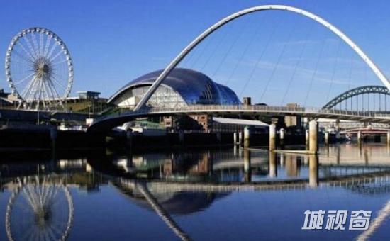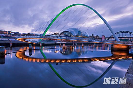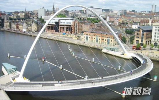 这座专为行人和骑自行车的人们通行的倾斜桥值得赞扬,是世界上第一座也是目前唯一一座倾斜桥,曾为其设计者带来4400万美元巨额奖金。该桥横跨泰恩河,连接着南岸的盖茨黑德和北岸的纽卡斯尔。这座弧形桥可以通过压力扬吸机来进行旋转升起,以便让过往的小型船只通过,而这一创新技术也让其设计者在2002年赢得了建筑界权威的斯特林建筑设计奖。