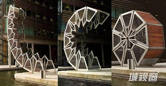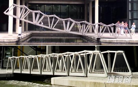 伦敦折叠滚桥由Thomas Heatherwick设计,这座12米长的桥位于英国伦敦的帕丁顿,每周五的正午12点准时打开。由八个小模块组成。不使用的时候可折叠成一个八角球形,方便搬运移动。这座可折叠的桥是大联盟运河办公室在帕丁顿盆地的开发项目,由八个部分铰接组成。