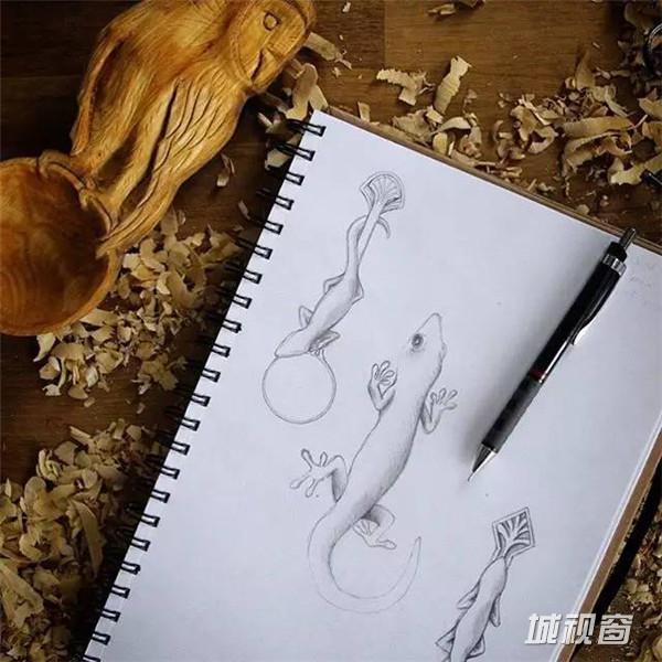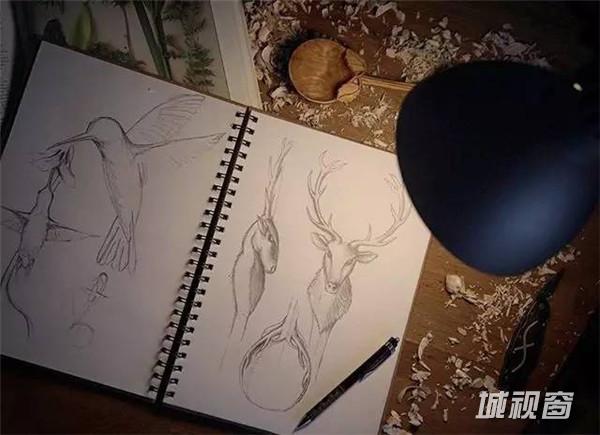 平时的Giles除了雕刻木勺就是喜欢收集能够打动他的花花草草、落叶、飞鸟图样神马滴,然后拿出笔画在随身携带的笔记本上。