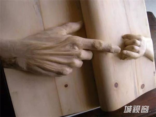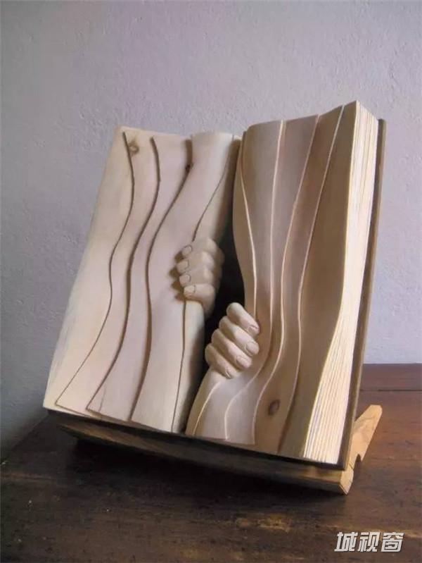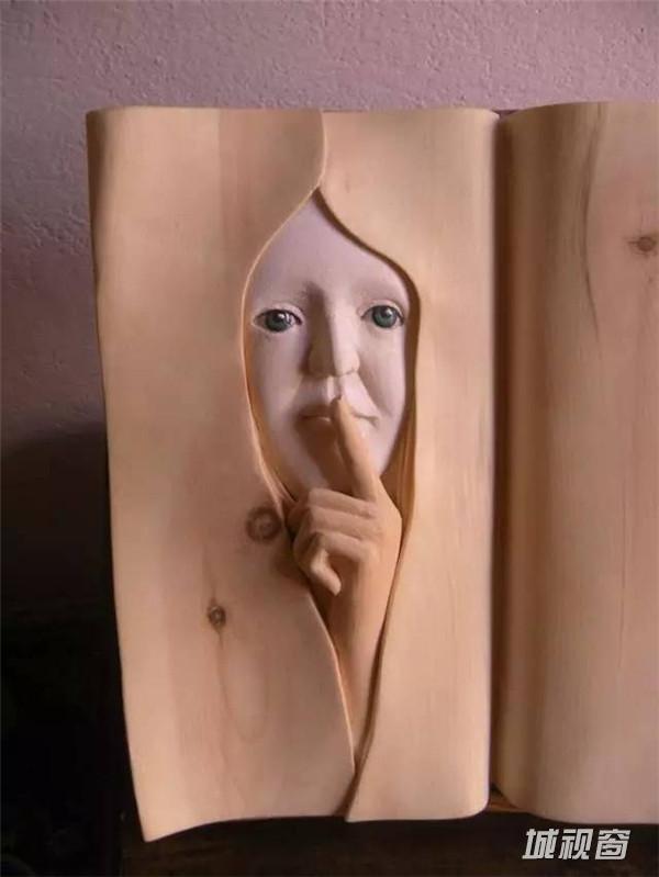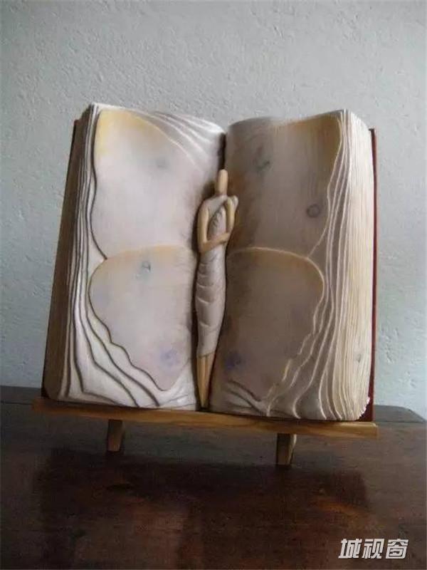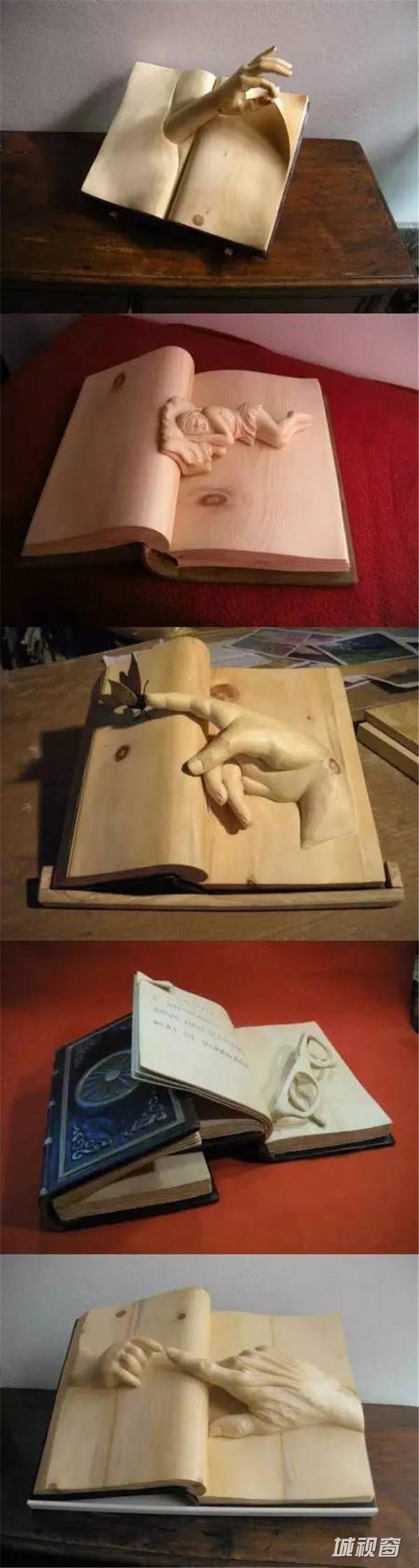 意大利艺术家Nino Orlandi的木雕作品。他的作品多以书为背景,书上或是一只优雅的手,或是栖息的蝴蝶,熟睡的少女,如果不仔细看,会以为它简直就是真的。有一个词叫跃然纸上,而Nino Orlandi的作品就是最好的体现。