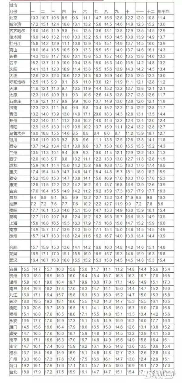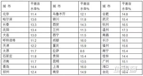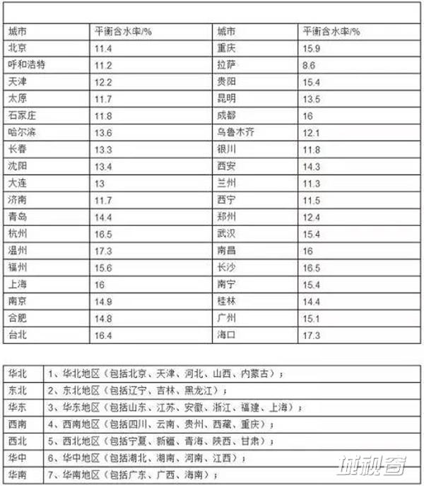 我国主要城市木材平衡含水率全年各月份含水率表: