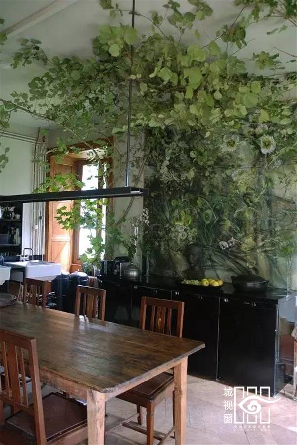 她最喜欢花草,城堡被改造过后,里里外外都被植物包围,有她画在墙上的花草,有屋外种满的鲜花,也有屋里处处插满的花草。每间房间都不一样,客厅、厨房、餐厅、画室、书房、十几间卧室,每一个角落几乎都被她最爱的植物充满。