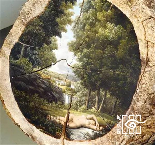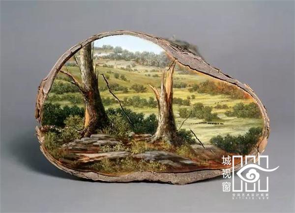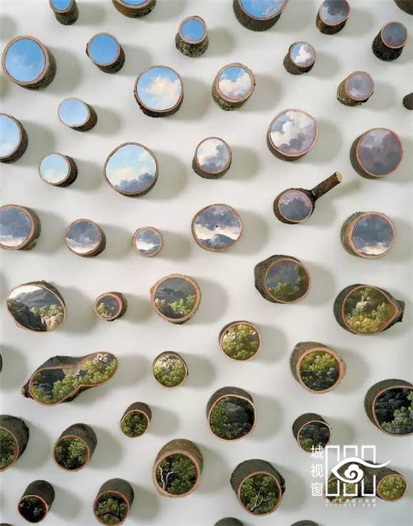 美国艺术家艾莉森·莫瑞斯格(Alison Moritsugu)的油画作品是艺术史和环境意识的完美结合。树木既是她画中的主角又是她的画布。她在大量树桩断面上完成的画作展现了未经人类打扰的、最原始美丽的自然风光,还原了美国原住民才目睹过的世外桃源。但同时,她也描绘了另一种完全相反的景象——因人类发展而惨遭破坏的自然环境。