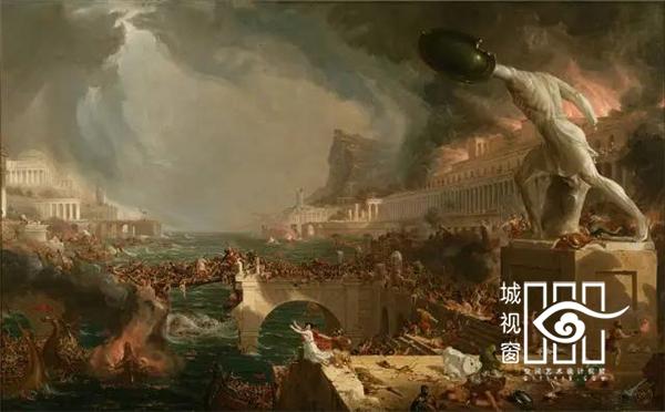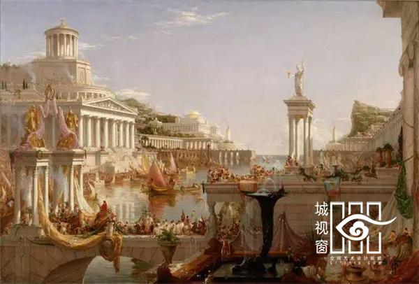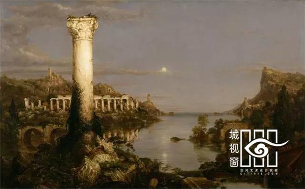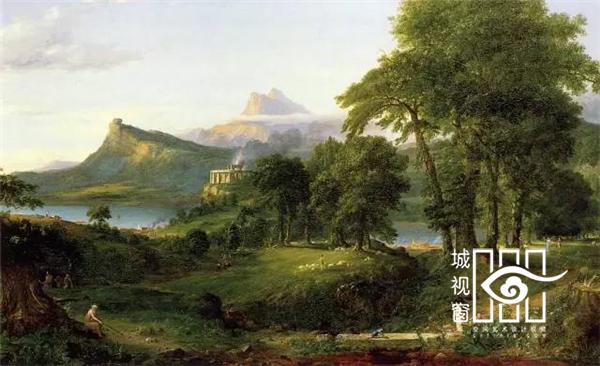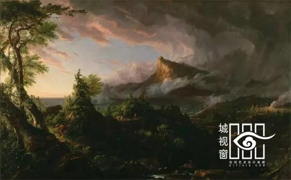 《世外桃源》、《野性》与《征服》借鉴了19世纪美国风景画家托马斯·科尔最著名的作品《帝国的兴衰》系列油画,他的五幅油画描绘了同一个地点因人类帝国的建立而从原始田园美景转变成满是残垣断壁的荒芜。