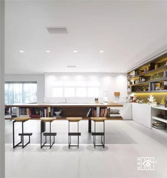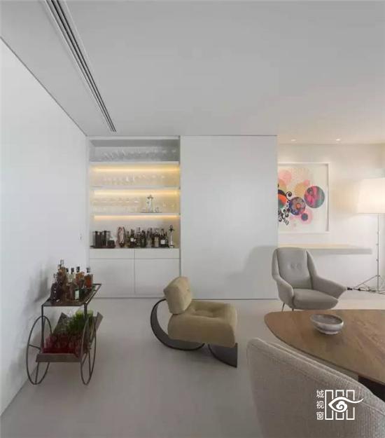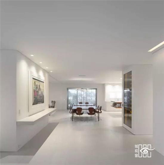 一个理性和感性的空间,推崇「少即是多」的设计理念,选择了纯白色调内饰和整洁光滑的家具,简单的线条,营造出一个完美的纯净家居世界。