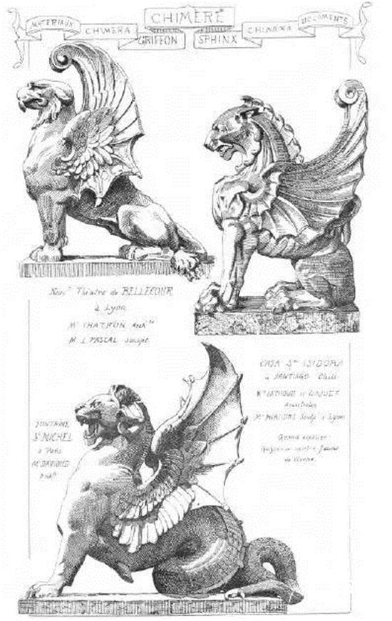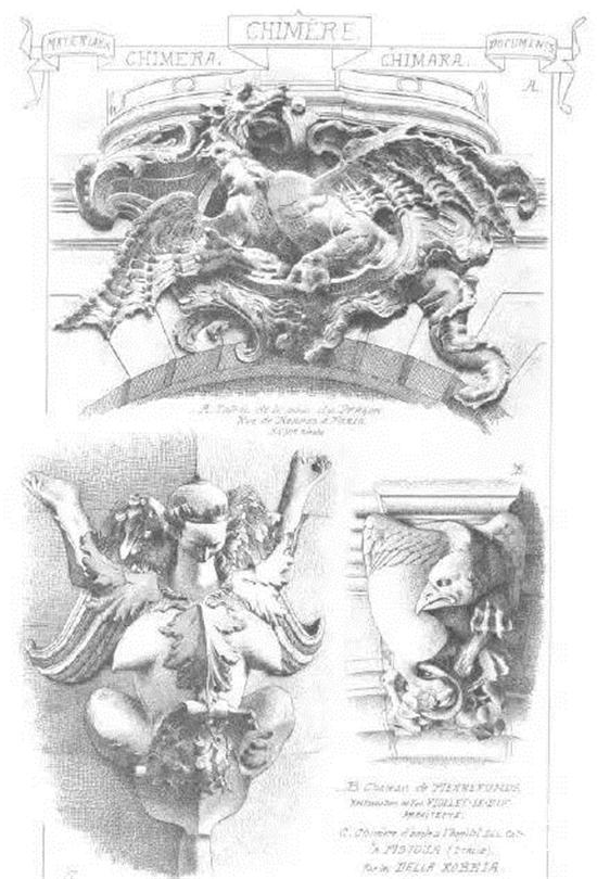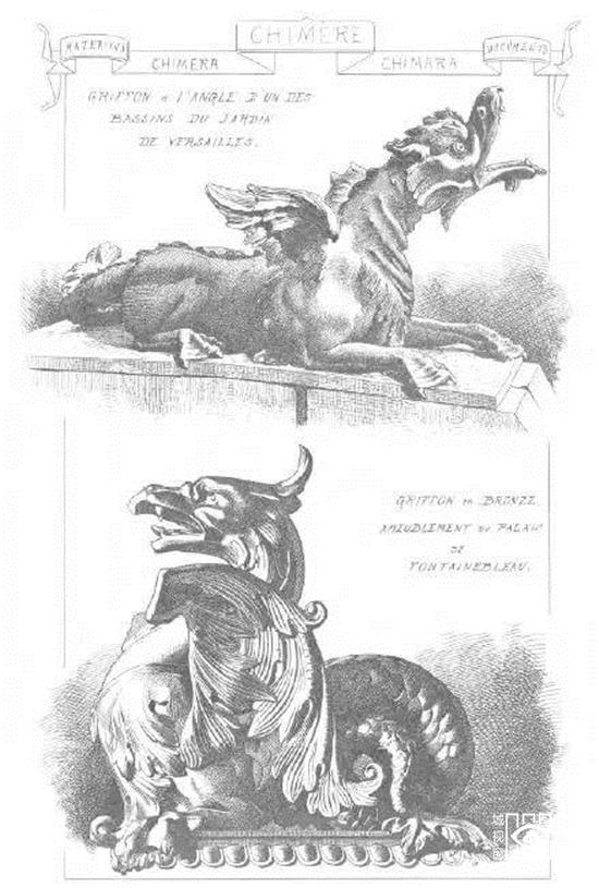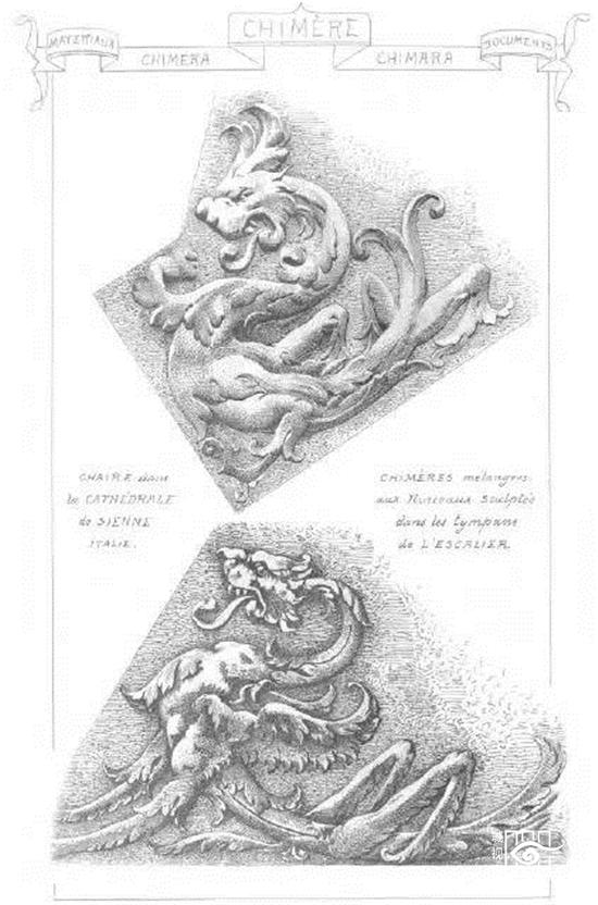客迈拉像(Chimeras),是指狮头羊身蛇尾的吐火怪物,也就是将几种动物混合起来的总称。人们想要保护建筑物,为了灵验,就把各种生物最有威力的特征都集中在一起。这也许是当时人们创造出杂交怪兽的原因之一,同时也警示人们不要低估“伪装的恶魔”。