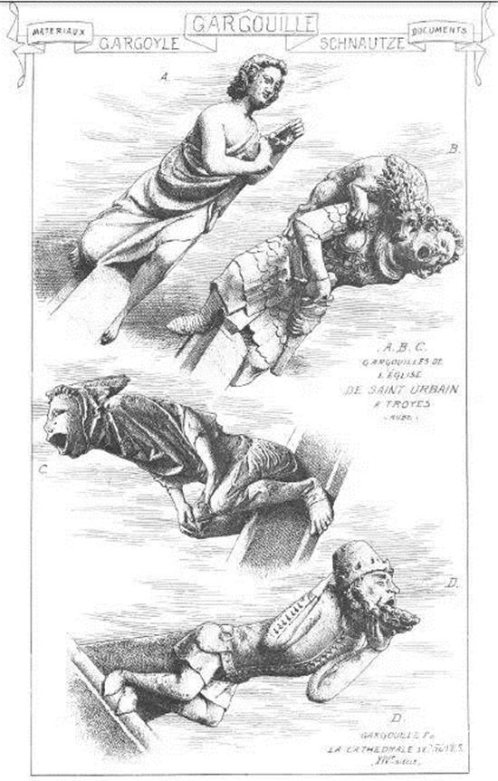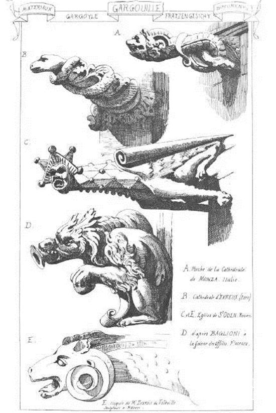 这些奇异的、幻想的、稀奇古怪的小兽在古埃及和古希腊、古罗马就已有之,有学者认为,怪兽的装饰是罗曼艺术的遗存,最常见的观点认为,这些小怪兽的功用是保护建筑及建筑的主人,避免邪恶的事物入侵。
